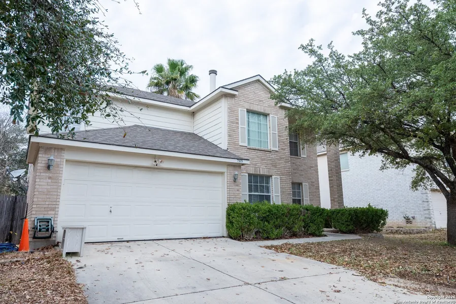 Move-in ready gem in a gated Northwest San Antonio community near Medical Center and UTSA! This home features an open living area with fireplace, formal dining with designer lighting, and a bright eat-in kitchen with French doors to an extended deck overlooking a private backyard with lush landscaping and palms. The upstairs master suite offers high ceilings, walk-in closet, double vanity, and spa-style tub & shower. Game room, ample storage, and refrigerator, washer, and dryer included-luxury, comfort, and convenience all in one!