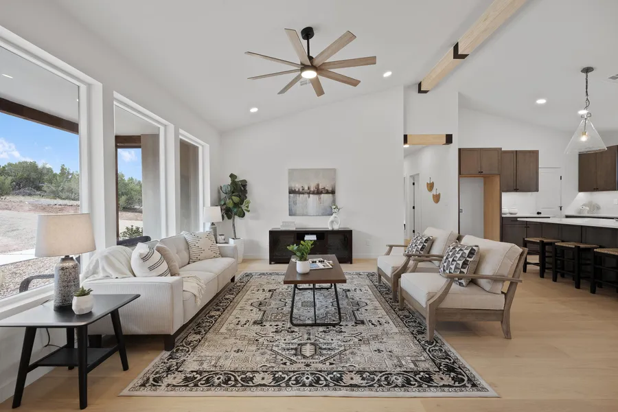 Welcome to Paako Ridge. This brand new home features high ceilings, oak flooring, quartz countertops, ss appliances, tankless hot water, central cooling, and an amazing chef's kitchen and pantry. All situated on a private cul de sac with amazing views. Close to Abq but surrounded by peace, quiet, and small town community. Paako has world class golf and a community pool and tennis courts. Easy drive to Santa Fe or Abq.
