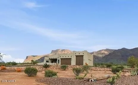Experience the best of luxury desert living in this stunning 2023-built custom home, perfectly situated on over 1.6 acres of pristine natural desert in scenic Gold Canyon. Boasting 3 bedrooms, 2.5 bathrooms, 2,067 sq ft of highly-upgraded living space, this home offers elevated design with serene privacy, unobstructed mountain views from inside and outside. Step inside the Visionmakers glass front door to discover the open-concept floorplan, gourmet kitchen featuring granite countertops, premium appliances, solid Alder wood cabinetry and interior doors, stained concrete flooring, ceiling fans, window coverings accompany rich, warm finishes echoing the beauty of the surrounding landscape. Bathrooms are adorned with handcrafted solid wood vanities & granite slab showers. Click ''more Relax by the EPA-rated fireplace framed by a custom sandstone hearth sourced from Northern Arizona. Enjoy seamless indoor-outdoor living with an extended covered patio, outdoor kitchen, and a backyard observation deck designed to take in incredible Arizona sunsets. Car enthusiasts and adventurers will love the 2 car + RV garages with solid wood overlay doors powered by industrial-grade openers, epoxy flooring, three 50-amp outlets for EV charging, air compressors etc.. 54-foot long RV garage is equipped with water and sewer connections. Additional RV hookups are available on the east side of the property. Other highlights include: surround sound wired great room, owned PRIVATE well, above-ground propane tank for gas appliances, Rustica solid wood guest suite doors leading to front courtyard, Custom courtyard gate and built-in firepit to enjoy those gorgeous sunsets! This is a rare opportunity to own a truly custom-built retreat backing up to State Trust Land with no detail overlooked, nestled in one of Arizona's most picturesque and peaceful settings.