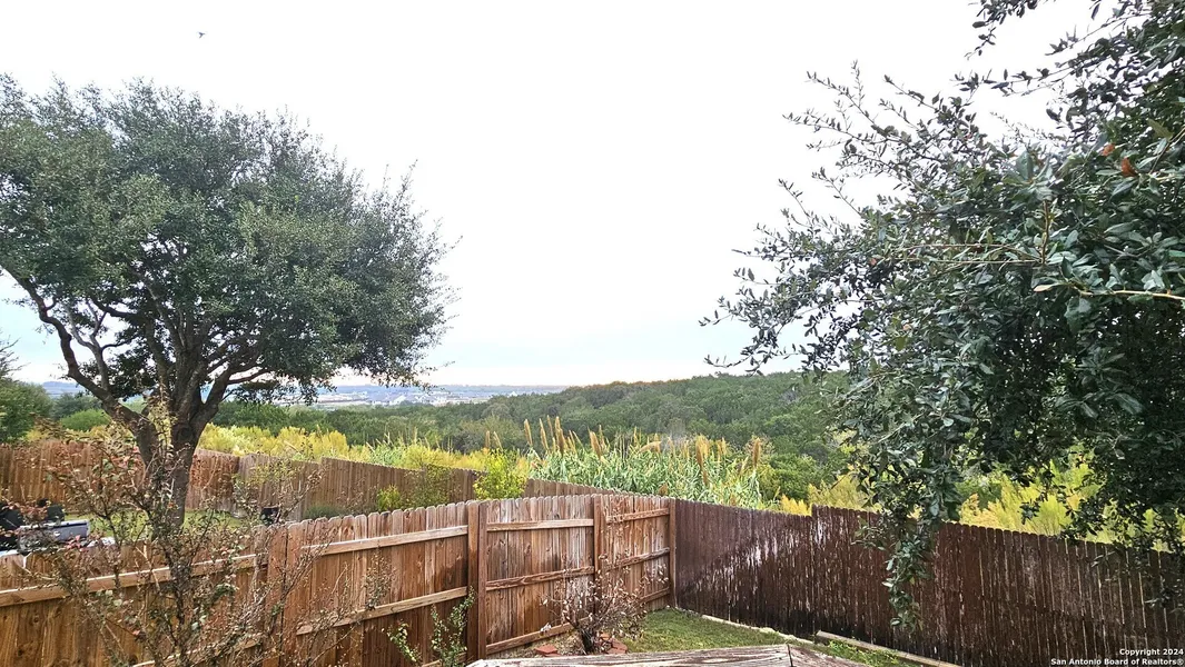 SINGLE STORY ON A GREENBELT WITH A VIEW! This lovely Pulte home in a coveted community in north Schertz is ideal for those who want privacy and a stunning backyard vista. Wind through the wide streets of Fairhaven and marvel at how quiet it is while being so convenient to the I-35 corridor. This ranch style brick home charms with dazzling curb appeal with its level driveway, sweeping lawn and mature oak in the front yard. Through the front door, be greeted by a welcoming foyer perfect for displaying art whi
