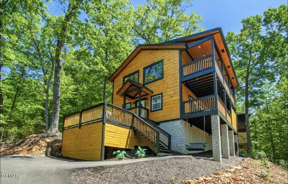 Experience modern mountain living in this 2BR/3BA luxury cabin located in the desirable Sky Harbor community. This newly built property offers an exceptional opportunity for both investors and those seeking a private mountain retreat. The main level features an open-concept living area with a striking stone fireplace, abundant natural light, and recessed lighting throughout. The kitchen includes granite countertops, stainless steel appliances, a stylish tile backsplash, and a breakfast bar. The first floor also offers a dining area, a utility/laundry closet, and a full bathroom. Upstairs, both bedrooms feature en-suite bathrooms with beautifully tiled walk-in showers. The primary suite includes a separate soaking tub for added comfort. Each bedroom provides access to the large covered deck. The main level deck features a hot tub conveniently located just off the living area. Designed for comfort and luxury, this cabin is ideal as an investment property or personal getaway. Sold fully furnished. Turn-key and ready for your guests! Schedule your private showing today to experience this exceptional Sky Harbor property.
