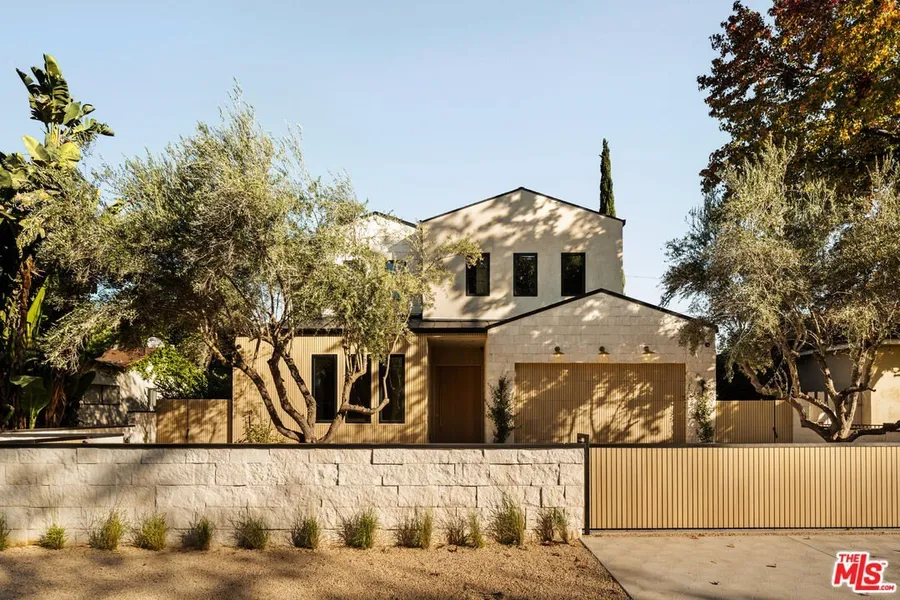 This newly built contemporary home by MLR Development, showcases striking design, thoughtful craftsmanship, and approx. 4,002 sq ft of refined living space in prime Sherman Oaks. A dramatic entry leads into an open-concept main level featuring expansive living and dining areas, soaring ceilings, and a private ensuite bedroom ideal for guests or a home office. The gourmet chef's kitchen is equipped with Miele appliances, stone countertops, custom cabinetry, an oversized island, and 10-foot collapsing glass doors that open to the backyard for seamless indoor-outdoor living. The private outdoor retreat offers a sparkling pool and spa, built-in BBQ, Green Egg smoker, pizza oven, generous lounge and dining areas, and lush landscaping for complete privacy. Upstairs, four ensuite bedrooms include a stunning primary suite with a sleek fireplace, custom walk-in closet, and spa-like bathroom with dual vanities, soaking tub, and oversized steam shower. Just moments from some of Sherman Oaks' best-rated dining and cafes including Anajak Thai, BLVD Steak, Bacari Sherman Oaks, and Tortoni Caffe. All just minutes from your front door. A rare opportunity to own a newly constructed luxury residence in one of Sherman Oaks' most desirable neighborhoods.
