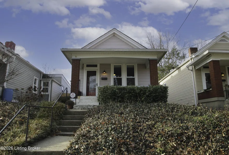 This updated shotgun sytle home has been lovingly cared for and has so much to offer including replacement windows 2020, roof 2018, garage roof 2025, and a new furnace 2025. The covered front proch leads into the living room complete with original pine floors and lots of natural light. The primary bedroom offers abundant space and a large closet. The open concept kitchen has wood tone cabinetry with soft close doors and drawers, corian countertops, and a full suite of stainless steel appliances to remain. The kitchen flows seamlessly into the dining room which could also make a great family room. Off the dining room there is a second bedroom and a renovated full bath which features a tub with tiled shower surround, modern vanity and linen closet. Outside you will appreciate the covered patio area complete with new pavers and full privacy fence with a sidewalk leading to the oversized one...