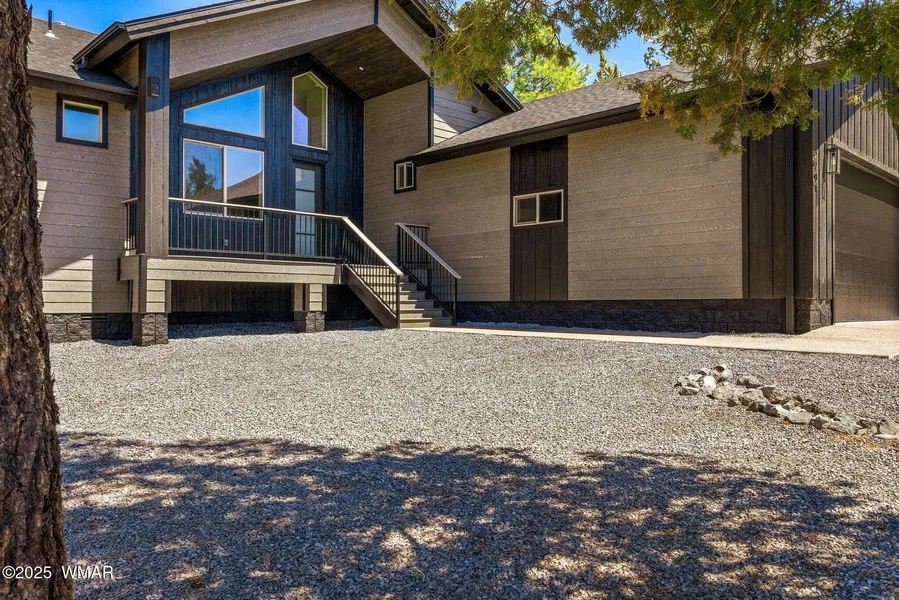 Stunning new custom home in the gated community of Eagle Mountain Estates! This beautifully designed single-level, 2,075 sq ft home is nestled among the tall pines just minutes from Show Low-offering the perfect combination of privacy and convenience. Featuring 3 bedrooms, 2 bathrooms, and a split floor plan, the home showcases an open-concept great room with vaulted ceilings, wood frame construction, and durable laminate plank flooring throughout. The living area is centered around a striking slate gas fireplace with built-in shelving extending to the ceiling-creating a warm and stylish focal point. The kitchen is an entertainer's dream, featuring a large island with dramatic waterfall quartz countertops and built-in stainless steel appliances, including a gas range, microwave, dishwasher, and disposal. The guest bathroom and laundry room both feature tile extending to the ceiling for a...