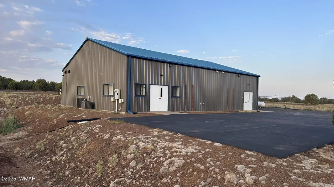 3700 Industrial Loop is comprised of a 1.0 acres (43,560 Sq. Ft.) parcel zoned I-1. The 3,000 sq ft metal framed commercial building features a large main work area with textured finished walls, acoustic ceiling tiles, HVAC and work space for ventilated work counters. A separate approx 700 SF office features a reception area and a private office with 3/4 shower in the bathroom. The lot has been graded and cinders laid to extend parking for fleet vehicles. The asphalt parking has space for 4-8 vehicles. Located south of Show Low's Regional Airport and near US Hwy 60 in Show Low's Thunder Industrial Park near the Aero Products - Helicopter Accessory Service.