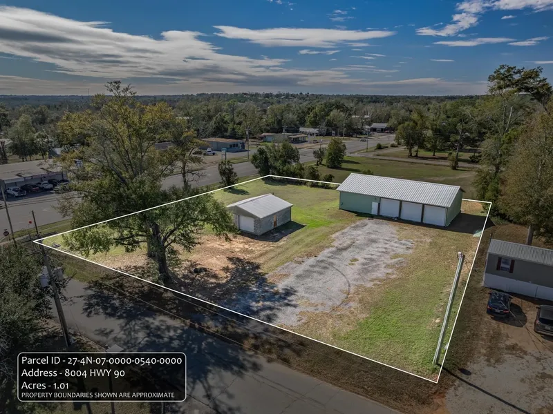 This property has two buildings on a 1 acre lot. The main building is 2160 sq. feet with 3 overhead doors on the front and 1 drive through door on the rear of the building. It is constructed with metal siding and a metal roof. The interior of the main building has a partitioned unfinished office area and a 12, 000 lb a-symmetrical free standing lift with unlimited storage potential. This building has a 200 amp power source which supplies power to the building and to a 50 amp RV connection with water and sewer on the exterior. The second building is 870 sq. feet. It is constructed with block and a metal roof. It has been used for storage. It has a separate 200 amp service with water and sewer. This property would be a great location for any service business or storage facility.