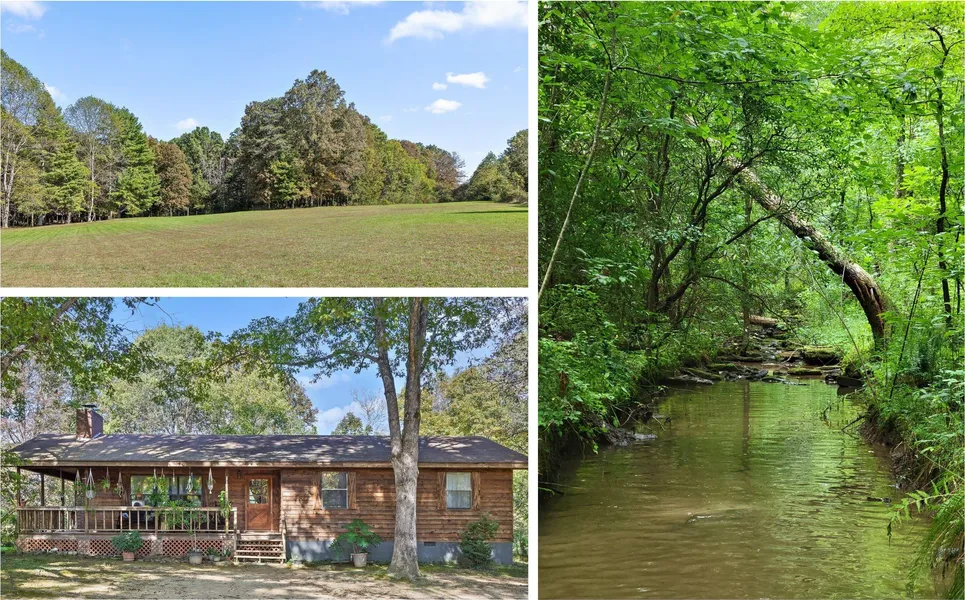 WATCH VIDEO: - SINGLE LEVEL Home on Unrestricted 38+/- ACRES! Perched atop Mowbray Mountain in Soddy-Daisy, this beautiful property in Hamilton County offers the perfect blend of privacy, convenience, and possibility. Beyond the private GATED entrance and pasture lies a captivating landscape of mature hardwoods, open fields, and a meandering CREEK - ideal for exploring, farming, hunting, gardening, or simply soaking in the peaceful outdoors. Established TRAILS invite hiking, horseback riding, or ATV adventures, while multiple prime building sites offer the opportunity to create your dream estate, family compound, or outdoor retreat. The 1-LEVEL HOME exudes rustic charm with 3 beds, 1 bath, a galley-style kitchen, and adjoining dining and living areas. A large unfinished walkout BASEMENT provides additional space and potential, while two BARNS offer ample storage or workshop areas. Cozy u...