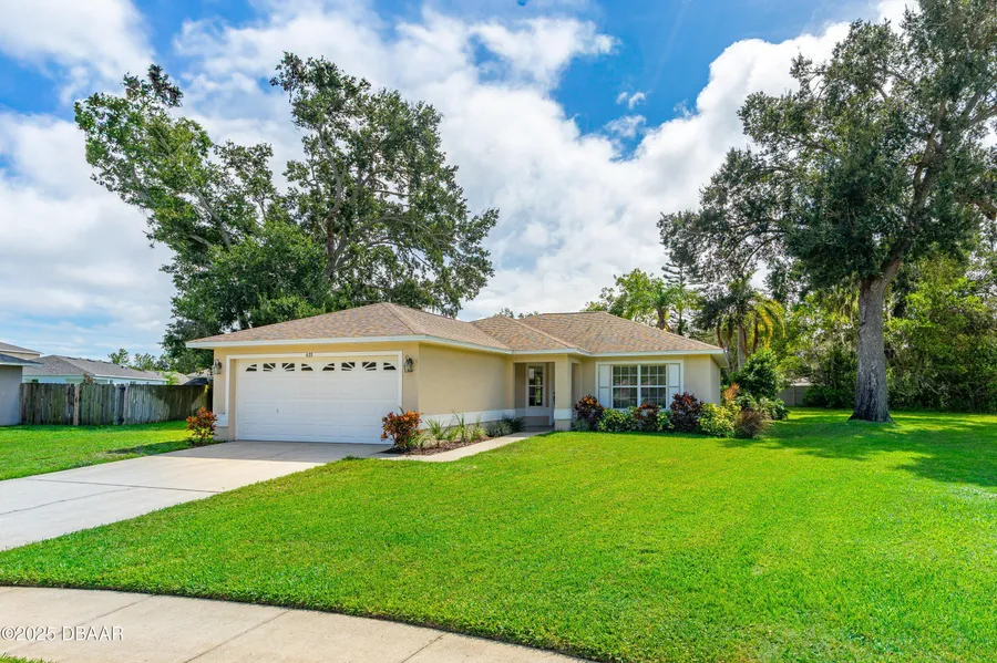 Welcome to this charming 3 bed, 2 bath ranch style home on a cul de sac at the back of Coventry Forest! This property boasts a 2020 roof. The covered entry opens to the kitchen, great room and primary suite on the left, guest bedrooms and bath to the right. The split plan accommodates both time together and privacy at the end of the day. Enjoy a peaceful cup of coffee as you walk through the sliding glass doors onto your covered, screened lanai for bug-free relaxation. The separate well for irrigation ensures lush, green surroundings. Conveniently located between Beville and Dunlawton Roads, Ridgewood and Nova. Come see this little slice of paradise offered at a very attractive price!