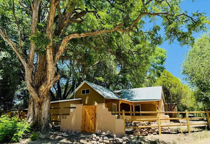 Historical, intriguing and magical. This unearthed treasure in Chimayo. Imagine families pouring dirt and water into small wood frames to create an adobe (mud block). Mixing in straw to the mud of the adobe blocks to create strong durable walls. A century ago, the families would build with double adobe walls, creating a stronghold for their families. Adobe block. No chemicals. Only the earth's ingredients itself. Next, as many families in this small community would do, they would either go to the nearby Carson National Forest and collect the lumber that would be cut into flooring or placed above ceilings in rafters known as vigas. A horse ride to nearby Santa Fe to collect glass for doors and windows and steel roofing. Now, a home build not to last one century, but many centuries! So solid inside the home, you would feel like you're in paradise. This adobe home, built in the 1900's by the local Trujillo family, well-known weavers and carvers. A local man named Cordova, came in, saw its potential and slowly and meticulously brought it back to life. Step by step. Placing a true value on a home like this is immeasurable. It is a timeless treasure blending historical charm. With daily improvements and renovations, 2,300 sq ft haven features 3 bedrooms, 1 bath, 2 living areas, and a studio. A rare chance to own a piece of New Mexico's rich heritage. Step inside to discover traditional Vigas-wood beams harvested from the nearby Carson National Forest-gracefully curved adobe walls, and natural wood floors that echo the region's storied past. A charming portal and quaint courtyard invite you to savor outdoor living. Handcrafted wooden doors and a custom gate by "Las Puertas de Santa Fe," adorned with intricate iron details, and a durable tin roof add to the home's rustic allure. The courtyard is modeled after the Santuario De Chimayo Church. Almost completed and only needing kitchen cabinets. Daily work continues. It's almost like unearthing a historic treasure.