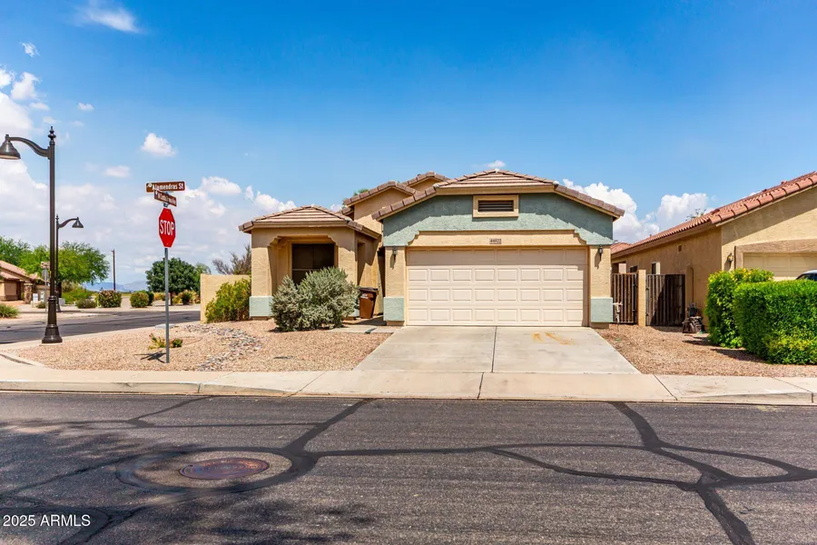 Discover all the charm of this lovely single-story home nestled in a prime corner lot! Inviting curb appeal with a manicured landscape and a 2-car garage. Inside, you'll be greeted in a brightly sunlit great room featuring carpeting underfoot for added comfort, tile in all the right places, and a neutral palette. The well-appointed kitchen awaits your culinary adventures, complete with spacious cabinetry, ample counter space, and built-in appliances. Get a restful sleep in the main bedroom, boasting a bathroom with double sinks and a closet. Your easy-care backyard includes a covered patio where you can relax with your favorite drink and plenty of room for your projects''add your personal touch and build your perfect oasis! This gem is a must-see!