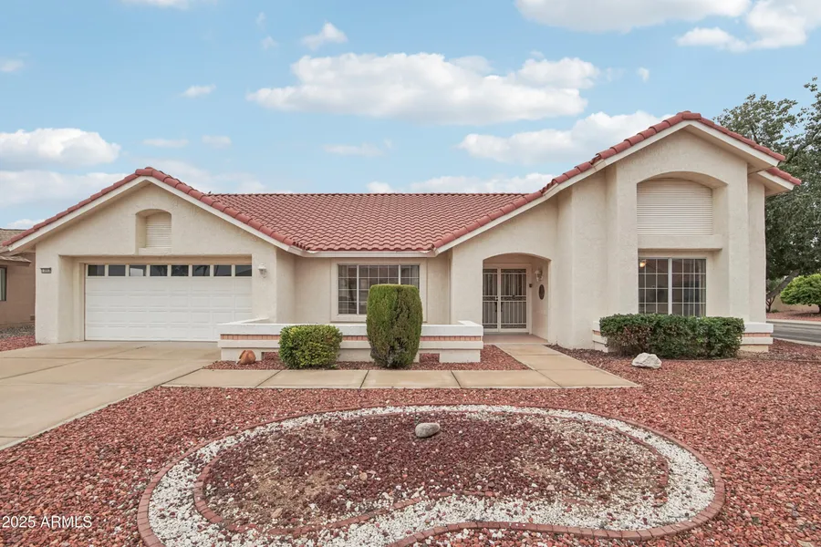 Situated on a corner lot on a quiet street, this inviting home features stucco siding and a tile roof. Inside, there is neutral tile flooring and brand-new carpet installed 12/2025, along with fresh interior paint. Multiple living and entertaining spaces include a separate living room with dining area, a comfortable family room, and a large pergola-covered patio perfect for outdoor dining and gatherings. The kitchen has granite countertops, a breakfast bar, and an eat-in area with a bay window. The guest bathroom adds a touch of modern style with a vessel sink, while a new Trane A/C system (14 SEER, 4-ton) installed in 2025 provides energy-efficient comfort. Additional highlights include indoor laundry and four recreation centers to enjoy the many amenities Sun City West offers.