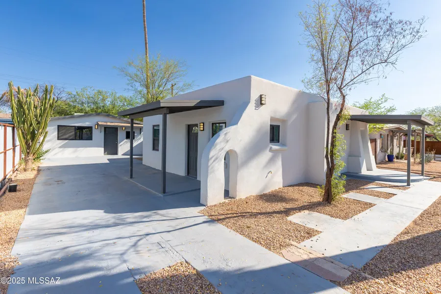 Range Pricing $379,000-$389,000. Owner/Agent. Welcome to this exceptional property featuring a fully remodeled main home (814 sq ft 2/1) made of burnt adobe and a separate guest house (476 sq ft 1/1), perfect for multi-generational living, guests, or rental income. Thoughtfully updated with alder wood cabinetry throughout both residences, custom walk-in showers, this home offers quality craftsmanship and timeless style. Enjoy upgraded electrical systems, sleek tile flooring throughout, and new central AC in main house with mini-split system in guest home. Located near Reid Park, running paths, dining, entertainment, and leading medical facilities. This home combines comfort, convenience, and versatility.
