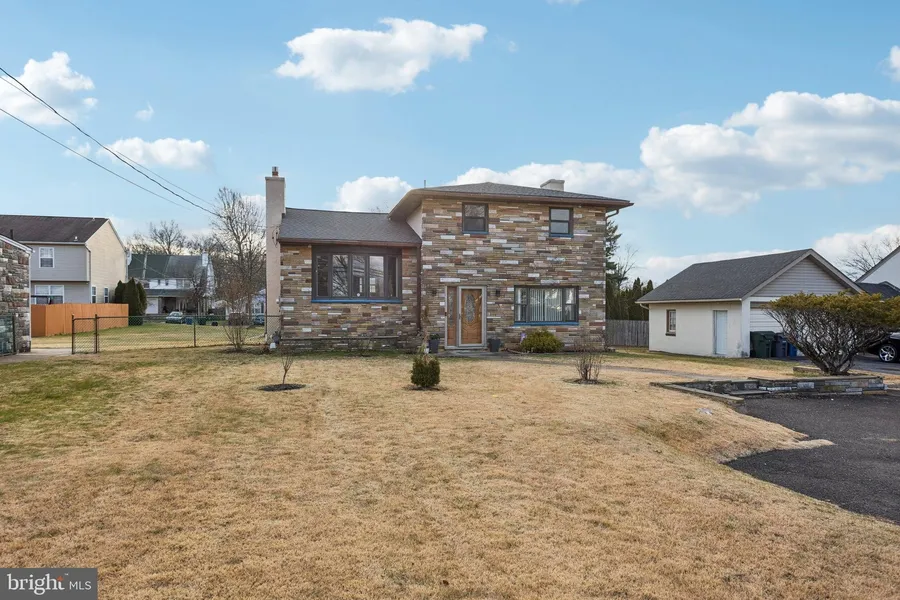 Welcome to this expansive split-level home set on a rare double-sized lot, offering exceptional versatility with a true in-law suite and brand-new flooring throughout. Enter from the oversized driveway into a welcoming foyer that leads to the main living space. The main area features a bright and inviting living room highlighted by a front bay window and a gas fireplace, flowing seamlessly into the spacious, renovated eat-in kitchen. The kitchen boasts granite countertops, a center island, stainless steel appliances, and a dedicated dining area, with sliding doors leading out to the rear patio. Upstairs, you'll find three generously sized bedrooms. The primary suite offers a large walk-in closet and an updated ensuite bathroom with a stunning glass-enclosed tiled shower. Two additional bedrooms share a beautifully updated full hall bathroom, also featuring a glass-enclosed tiled shower. The fully finished basement adds even more living space, complete with a laundry area, cedar closets, and direct access to the rear patio and fenced-in backyard. The true highlight of this home is the main-level in-law suite, accessible directly from the front entrance with no stairs required. This private living space includes a bedroom, living room with a fireplace, dining area, full kitchen, full bathroom, its own laundry room, and direct access to the rear covered patio-ideal for multigenerational living or extended guest stays. The backyard offers endless possibilities with a separate detached building that could serve as a she-shed, man cave, hobby room, or storage for outdoor tools and recreational equipment. Additional features include Pella windows and a roof replaced in 2021. Ideally located directly across the street from Willow Grove Mall, this home provides unparalleled convenience with an abundance of shopping, dining, and entertainment options just a stone's throw away. A truly unique property offering space, flexibility, and an unbeatable location.