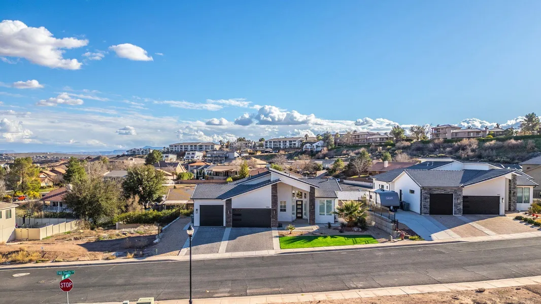 Contemporary luxury in this 3,300-sq-ft masterpiece. Flooded with natural light, this home blends sleek design with high-end finishes. Features include an expansive great room with soaring vaulted ceilings, a gourmet kitchen, 5 spacious bedrooms, and 3.5 baths. Enjoy iconic views and pure water via a Kinetico full-home filtration system. Modern living at its finest--perfect for entertaining.
