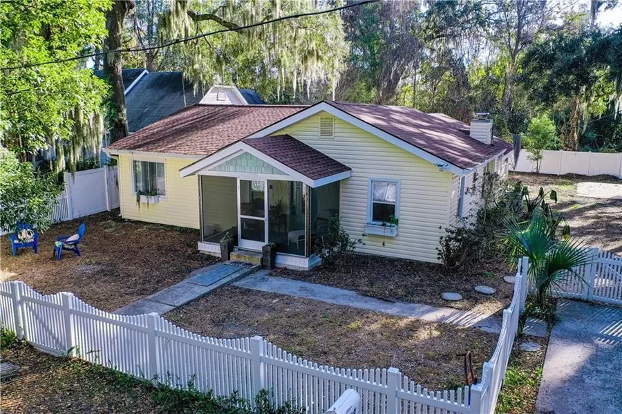 Nestled on a quiet, Live Oak–lined street on St. Simons Island, this beautifully renovated 1935 cottage blends timeless charm with modern comfort. The large, open floor plan has been thoughtfully updated while preserving its character, highlighted by an exposed natural wood beam that subtly defines the living spaces—from cozy evenings by the fireplace to relaxed lounging and TV time.