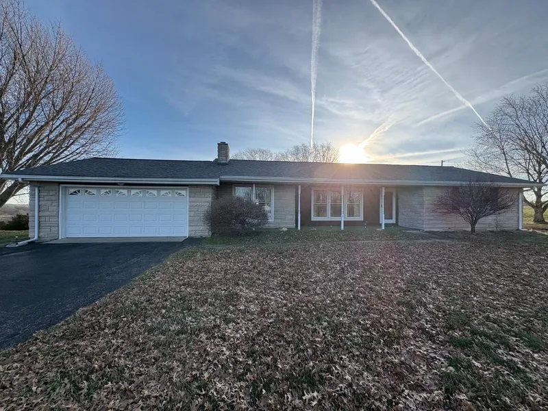 Loads of potential with this Bedford stone home. Located in highly sought after Ohio County, this home is a rare one owner home. Built in 1968 the home has an attached garage and sits on a full partially finished basement. Main floor you will find a large kitchen that walks out to a 4 seasons room. The living room has a beautiful fireplace and large windows. The main floor offers 2 bedrooms and an office along with a full bath. The basement is equipped with a kitchen and a full bathroom, with access from the garage and from inside the home. Outside you have plenty of room to roam, with over 26 acres of ground. The ground is mostly cleared and could support livestock or some row crops. You also have 3 pole barns to use, one being set up as a garage with a small office area and the other two more for livestock or storage. Property also has a nice sized pond to enjoy. This unique property won't last long, make your appointment today!