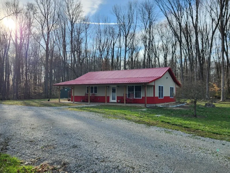 Bring the outside in with this 2 year old amish built 2 bed 2 bath bardo that is absolutely pristine inside and out. With large panoramic windows there is a view in every direction. The home features large front and rear covered stamped concrete porches, tankless water heat and custom touches throughout. The exterior features mature trees and newly planted privacy trees that are coming along. Store your toys in the 24X52 garage with garage door openers, concrete and electric. The property also features an oversized chicken coop and run for your critter fix. If you like someone well enough part of the property is an adjacent 1.15 Ac. lot that includes a water meter, driveway, and septic. Build another home or set up your camper. Many opportunities here make it yours. Motivated seller!!