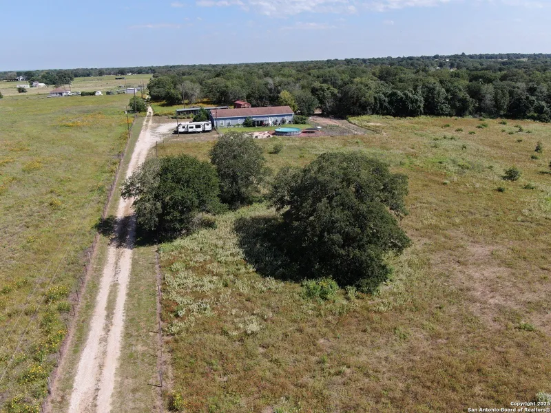 Come see this Sutherland Springs ranch-style home built on a concrete foundation. It's nestled in the backend of 5.85 acres of unrestricted country living with a cattle AG exemption. This 5 bedroom, 3 full bath house with multiple entryways and high ceilings is fenced and cross fenced and is waiting for your family. There is ceramic tile throughout the house with spacious rooms and a split floor plan that has 3 bedrooms on one side and 2 on the opposite with their own private entry/exit. Open Kitchen / Dining Room has updated counters, cabinets, and appliances which includes a large breakfast bar. Master bedroom features a movie theater with high-definition projector to a 120" screen complete with high end surround sound (Negotiable). The home is comforted with an AC system that was installed new in 2021 with the remainder of a 10 year transferable warranty, has High Speed GVEC fiber internet service and has handicap access (36" doors and low entry tubs in 2 bathrooms). Outside there are lots of mature oak trees, spruce, and blue spruce trees. The front of the house features an above ground pool with sand pit for family fun and the back yard features a large double lofted Amish-built storage building and a chicken coop. Come see it today because this can be your peaceful, quiet, Texas country home.