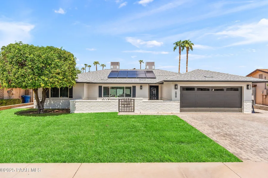 Exquisite Mid-Century Modern Retreat in Tempe This fully reimagined 5-bedroom, 2-bathroom mid-century modern home blends timeless design with today's luxury. Built in 1974 and crafted from classic slump block (with all exterior walls injected with insulation), it has been thoughtfully renovated top-to-bottom over a 2 year time span with meticulous attention to detail at a cost over $250K. The light-filled, open-concept floor plan features raised kitchen ceiling, all-new windows and doors, wood-look tile flooring, NO carpet, 5.5'' baseboards, and designer touches including white brick accent walls and board & batten details. At the heart of the home, the chef's kitchen shines with Bosch stainless appliances, including a Professional pedestal range- DUAL FUEL gas range, fridge & dishwasher,
