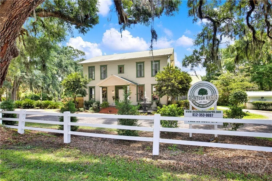 This 13+/- acre income-producing RV park in McIntosh County, GA offers an exceptional investment opportunity with expansion potential. Just 1.1 miles from I-95, the property is zoned PUD, allowing up to 195 RV slips. Currently operating with 18 full hook-up sites, the park features app-based and coin-operated laundry, a 24'x30' metal storage building, and a massive artesian well serving the entire property. On-site lodging includes three income-producing units: a beautifully restored 5BR/6BA historic home (McIntosh Manor), a private Cypress Log Cabin, and a fifth-wheel RV. Towering live oaks and a historic carriage house add charm and future event potential. Completed site plans for expansion and integrated automation systems make this a turnkey opportunity for a boutique RV resort, short-term rental retreat, or unique event venue. Located directly off Historic Hwy 17 and minutes from Darien, Brunswick, Savannah, and the Golden Isles.