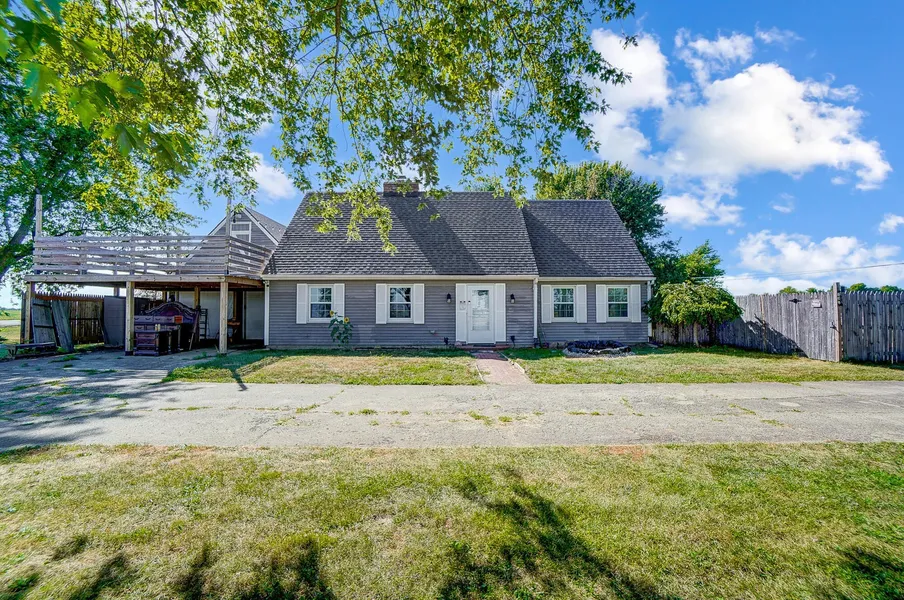 You can't miss out on this perfectly nestled cute Cape Cod, situated on 1.21 Acres in Miami Co./ Concord Twp. 3 Bedrooms & 2 full baths with oversized 2 car garage w/ 400 sq. ft. loft storage above garage w staircase and an outside party deck. Master bedroom on the main floor w/ full hall bath. Also on the main floor is a potential 4th bedroom or office. 2 large bedrooms upstairs with huge walk in closet and full bath. Kitchen with tons of storage is open to the dining area that leads to the back patio perfect for entertaining or relaxation. Huge living room w/ brick wood burning fireplace. New roof, updated windows, updated flooring in most of house, updated furnace and updated water softener. Seller to offer $5000 credit at closing for flooring