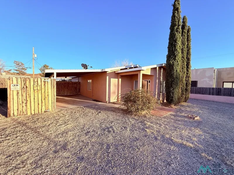 Come take a look at this 1,072 sq ft 2 bed 2 bath home Located in Truth or Consequences and just minutes from downtown and the local Hot Springs! Inside features include tile and carpet flooring, an open kitchen area with cabinets, a separate laundry area and refrigerated A/C. The property is completely fenced with a metal front gate for vehicle access, an attached one car carport, a storage shed along with mature trees that compliment the spacious yard.