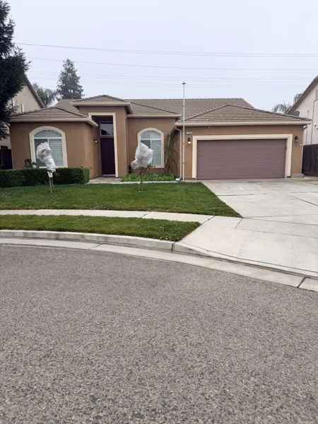 This home features 3 spacious bedrooms and 3 full bathrooms, plus an office that can be easily be used as a 4th bedroom, home gym, or flex space. Step inside and be greeted by soaring high ceilings that create an open, airy feel throughout. Enjoy this flexibility of both a formal living room and a spacious family room, ideal for entertaining, relaxing, or hosting gatherings. The thoughtfully designed layout flows seamlessly, making the home feel warm and welcoming. Outside, you'll find a beautiful front and backyard, perfect for outdoor entertaining, play, or simply enjoying peaceful evenings at home. If you're looking for a home that offers space, functionality, and an unbeatable location, this one checks all the boxes. Don't miss your opportunity to own a home in one of Tulare's most sought-after areas!
