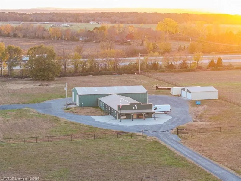 Discover this unique opportunity to have your residence on site alongside this immaculate multi-use office building that features an attached, spacious warehouse/shop plus an additional detached shop with multiple overhead doors for numerous uses! The entire property is situated on 10 acres of surveyed land, enhanced by pipe fencing and a secure gated entrance. With prime Highway 64 frontage, the property offers excellent visibility and is conveniently located near I-40 access, making it highly accessible for various business needs. This unique and expansive property is perfect for entrepreneurs seeking a versatile operation. Built in 2011 with addition added in 2022, it provides an exceptional opportunity to have your residence on site, combining work and living spaces for maximum convenience. The property includes a fully equipped kitchen, a full bath with shower, washer and dryer, and a walk-in closet, allowing for comfortable on-site living. Personalize your business environment with five private offices, two welcoming lobby areas, abundant storage solutions, and extensive workspaces. The layout is thoughtfully designed to support a wide range of professional activities while maintaining a clean and beautiful atmosphere. The pipe fencing and gated entrance further enhance security and privacy, making this property a standout choice for business owners. Fiber optic makes this unique rural location even better!