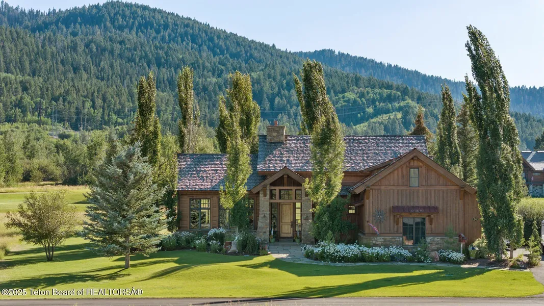 Nestled in the sought-after southwest corner of Teton Springs, 24 Winger Circle offers direct access to the National Forest and unobstructed views stretching across the open space and eighth fairway of the championship golf course. This elegant residence is perfectly sited on a south-facing homesite, where the expansive and private backyard enjoys all-day sun, year-round light, and stunning alpine vistas. Inside, the home is a showcase of thoughtful design and natural light, with soaring ceilings and a full wall of windows in the great room and dining room. The kitchen and dining area are seamlessly integrated, perfect for entertaining and everyday comfort. Upstairs, two additional en-suite bedrooms provide ample space for guests and family alike. 24 Winger Circle is a rare opportunity to own a home that blends timeless mountain architecture, premium location, and luxurious comfort.