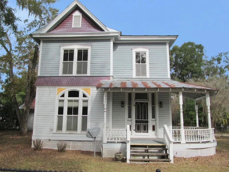 This striking Victorian home built in 1892 and located near downtown Monticello. The home features original hardwood pine floors, soaring 12-foot ceilings, a large bay window with bench seating (and storage) and several fireplaces. The master bathroom has been completely redone and complements the spacious master bedroom. The exterior of the home has a wraparound front deck, a rear screened porch, a spacious detached workshop with electricity and fully fenced grounds. The home will need renovation and repair, but it is a beauty!