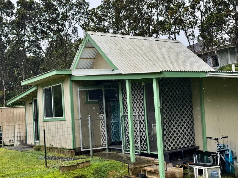 This well-built and thoughtfully designed 476 sq ft studio garden cottage offers comfort, functionality, and island charm. The interior features a full-size kitchen with newer stainless steel range and refrigerator, a separate dining area, a spacious closet, ample storage, a wall heater and a full bathroom. A back door opens to a 40 sq ft covered and screened lanai overlooking a nicely fenced area-perfect for relaxing and enjoying the peaceful surroundings. The beautifully landscaped yard is a true highlight, bordered by a variety of flowering tropical plants and productive fruit trees, including bananas, avocados, berries, and several citrus varieties. The property also includes a dedicated garden area and a lovely pond with colorful goldfish. There is a separate, mall storage unit on the property. There is also an outdoor shower. The home is powered by a fully owned solar system with four panels, an Outback inverter, and four batteries. The sealed catchment system includes an ultraviolet water filter and approximately 1,500 gallons of storage capacity. Offered fully furnished, the home includes a sleeper sofa, twin bed, dressers, dining table and chairs, side tables, dishes, linens, and more-making it move-in ready. It currently has tenants, who would like to stay. The house can also be sold free of tenants, if desired. Exceptionally well maintained and solidly constructed, this delightful cottage is located in Royal Hawaiian Estates, which has county paved roads and no CC&Rs. Highlights of this charming community: - Just 5 miles from Hawaii Volcanoes National Park. - Located in Lava Zone 3 - Only a few minutes from Highway 11 - Approximately a 35-minute drive to Hilo Airport. - Close to Volcano Village, offering restaurants, local shops, an art center, and farmers' markets. - Volcano Village is home to a winery and a golf course for leisure and relaxation.