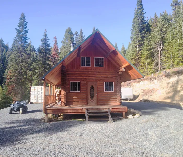 Nice hand-hewn log cabin on 11.55 beautiful timbered acres bordering the Nez Perce National Forest. Very private setting with underground power, septic and private well. Property has a separate building that was used as an art studio and a nice shipping container for secure and dry storage. Seller has planted fruit trees, strawberries & blackberries. Mineral rights! No CC&R's! Fabulous hunting! Property does require a tracked vehicle to access in the snowy winter months.