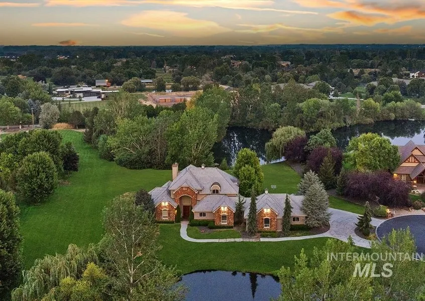 Nestled setting with lakes on both sides in an exclusive Eagle location! Over $40,000 in new interior paint! Spectacular, irreplaceable lot with breathtaking mountain views, the serenity of being just steps from the Boise River, multiple waterways & towering mature trees. Superior custom-designed home offers unparalleled luxury & sophistication. Over 4500sf with endless upgrades such as triple crown molding, rich hardwood floors throughout & abundant windows to take in the breathtaking views. Chef's kitchen is a masterpiece, featuring slab granite counters, custom cabinetry, top-end appliances & spacious pantry. The main-level master suite is a true retreat, boasting a fireplace, walk-in tile shower & clawfoot soaker tub. Upstairs, the balcony provides stunning eastward views of the mountains & overlooks the tranquil water. The oversized 40x28 garage offers ample space. Enjoy full irriga...