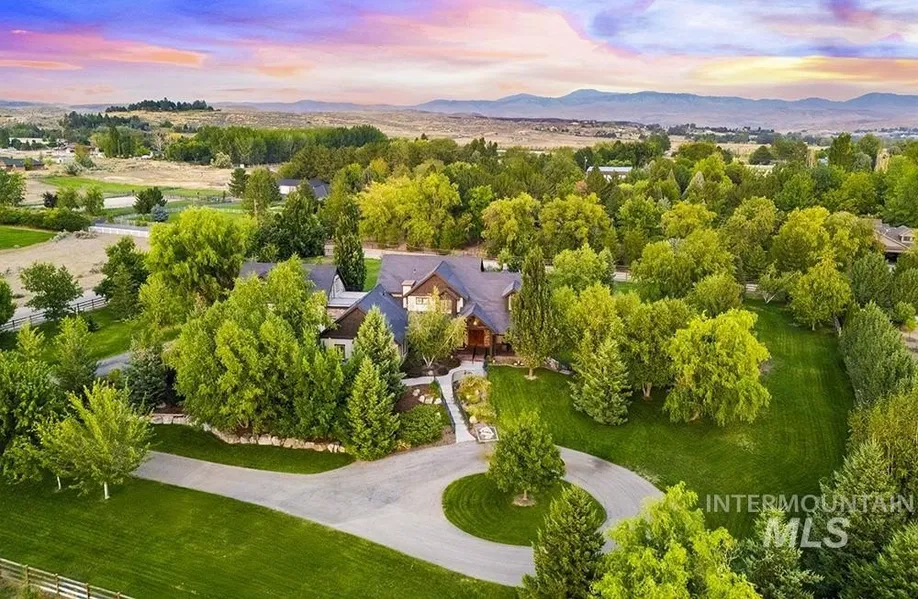 At the end of a quiet cul-de-sac, this Eagle acreage estate offers a rare blend of lifestyle & investment: a grand & spacious residence paired with a thriving truffle orchard of 250+ trees. Planted in 2019, the orchard is approaching production, with the potential for significant annual income & the unique joy of truffle farming – a pursuit long celebrated in Europe. Imagine hosting your own “truffle hunt,” followed by elegant dinner on the terrace overlooking your land. The 6,450 SF home is rich in rustic-European character, featuring arched double doors, a two-story great room with stone fireplace, and walls of windows framing the grounds. Multiple patios, porches, and an elevated terrace create seamless indoor-outdoor living, while an attached, finished space offers versatility for entertaining, ADU, creative studio, or business headquarters. With spacious suites, main-level primary, a bonus room, and flexible quarters connected by breezeway, this property provides unmatched potential & opportunity.