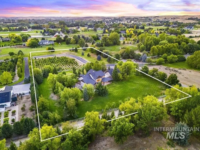 At the end of a quiet cul-de-sac, this Eagle acreage estate offers a rare blend of lifestyle & investment: a grand & spacious residence paired with a thriving truffle orchard of 250+ trees. Planted in 2019, the orchard is approaching production, with the potential for significant annual income & the unique joy of truffle farming – a pursuit long celebrated in Europe. Imagine hosting your own “truffle hunt,” followed by elegant dinner on the terrace overlooking your land. The 6,450 SF home is rich in rustic-European character, featuring arched double doors, a two-story great room with stone fireplace, and walls of windows framing the grounds. Multiple patios, porches, and an elevated terrace create seamless indoor-outdoor living, while an attached, finished space offers versatility for entertaining, ADU, creative studio, or business headquarters. With spacious suites, main-level primary, ...