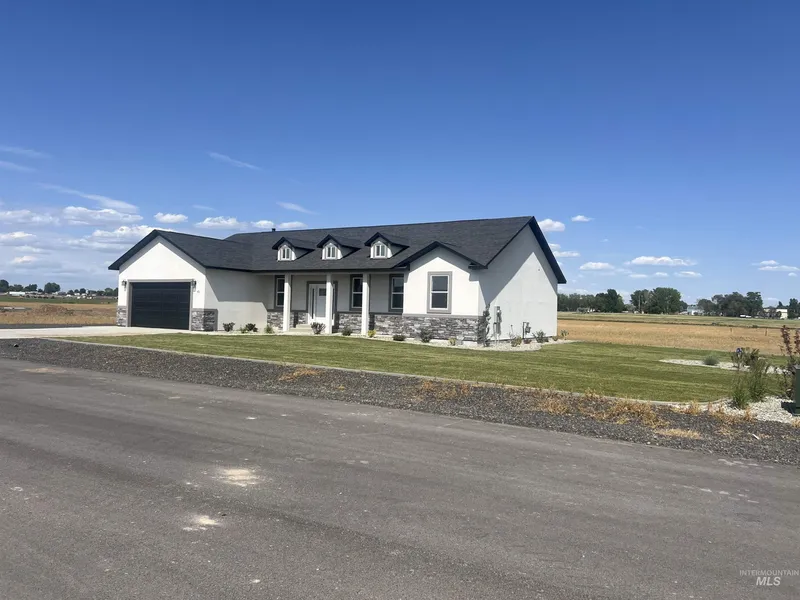 Beautiful new construction home on an acre lot in a new and upcoming subdivision west of Jerome. Well designed kitchen with gas range, refrigerator, microwave and dishwasher. Countertops are granite and has a breakfast bar and a large pantry cupboard. Home has 3 bedrooms and 2 baths plus an office. Living room has a natural gas gorgeous brick fireplace with mantel. The master bedroom is large and the master bath is stunning with dual vanities, spacious cupboards on each side, large soaker tub and walk in shower and two walk- in closets. There is also a separate laundry room. The outside is perfect with pressurized irrigation and sprinklers. Shrubs and bushes have already been planted and curbing is in. Room for the RV on the side of the home.