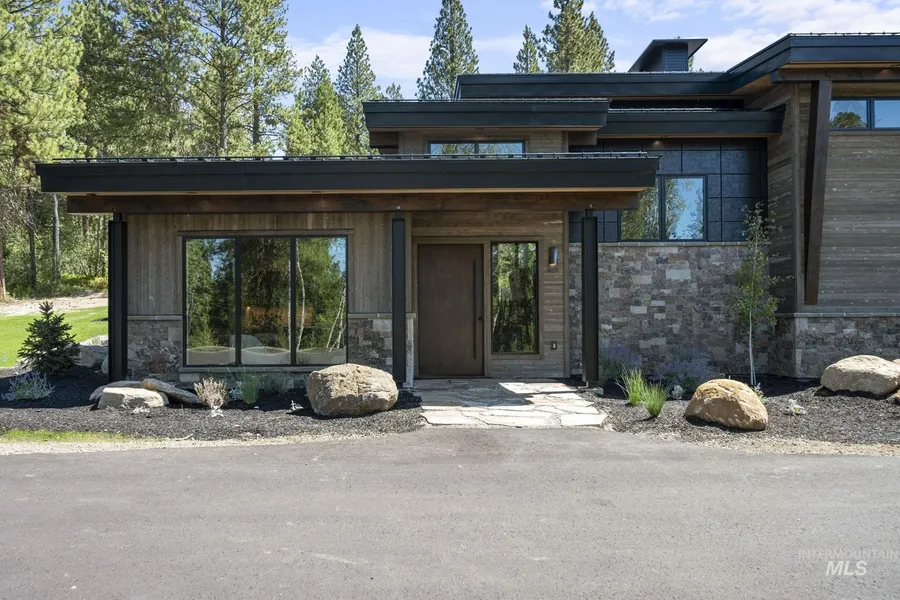 Discover the perfect blend of contemporary design and rustic elegance in this stunning 3-bedroom, 3-bath mountain modern retreat designed by J Truex and built by Mountain Elements. Set behind a private gated entrance on over 4 acres, this home offers privacy, sophistication, and every high-end detail you could dream of. The exterior showcases beautiful Montana Timber siding, welcoming you into a space defined by craftsmanship and comfort. Inside, custom rift white oak cabinetry, monarch plan european oak flooring, and natural soapstone countertops create a warm yet refined atmosphere. The chef’s kitchen flows seamlessly into open living spaces, highlighted by 3 propane fireplaces and 1 wood-burning fireplace for cozy evenings. A separate guest house offers flexibility for guests or multigenerational living, while the 2-car garage provides ample storage for vehicles and outdoor gear. Step outside to a magical backyard, complete with a fire pit—perfect for enjoying Idaho's starlit nights.