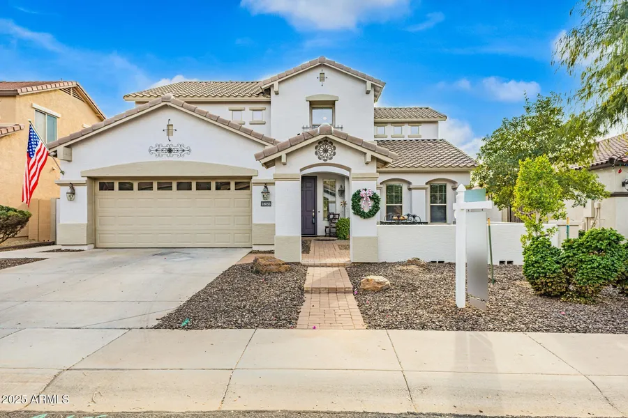 Highly upgraded, well kept home w/custom features throughout! Great curb appeal w/custom built paver courtyard entry. Upgraded gourmet kitchen has custom painted cabinets w/hardware, stainless appliances & tile backsplash. Family rm just off the kitchen has gas fireplace & surround sound prewire. Downstairs primary suite has views of the gorgeous backyard, upgraded bath & custom built ins in the closet. Upstairs has 4 bdrs + 2 more baths + giant loft. Backyard is GORGEOUS w/lush mature landscaping, extended patio w/pergola, extended concrete walkways, fruit trees & established garden. This home also features a 3 car garage w/extra 220v. Located walking distance from the elementary school & big community park. So many upgrades, a must see!