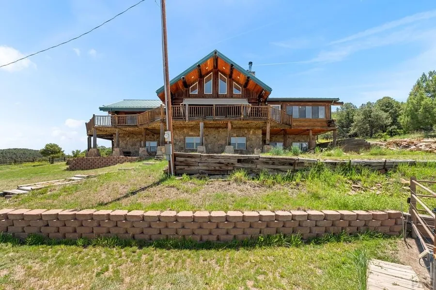 SHORT SALE: Escape to a 5,200 sq ft custom log home on a 35-acre wooded retreat in the Spanish Peaks. This home blends rustic elegance with modern comfort, featuring an open-concept living area with a stone fireplace and a wrap-around deck for panoramic mountain views. The main-level primary suite includes a luxury bath and a private solarium. The finished walkout basement has a bonus room, two bedrooms, and access to an oversized attached garage. The property also includes a large detached shop and a newer metal roof. Virtual Tour: Use this link for directions