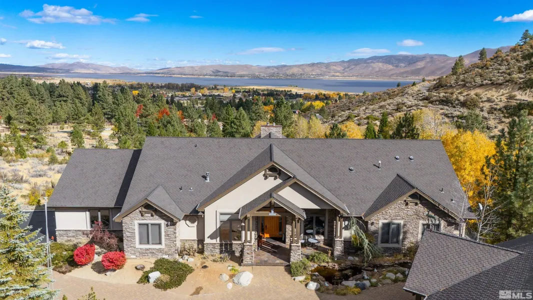 This beautifully situated custom home with views from every room is tucked into the mountain overlooking the majestic Washoe Valley and lake. The eastern property border is a stand of old growth Aspens and a small creek. Easy access to shopping in Carson City and just minutes from Toiyabe Golf Club. Knotty Alder cabinets with Brazilian cherry hardwood flooring mixed with travertine and slate set the theme of mountain modern. The kitchen is an entertainers dream with 2 islands, beautiful Knotty Alder cabinets allowing for tons of storage, 3 dishwashers, 2 disposals, a Subzero refrigerator, full freezer, and six burner range with pot filler. The lower level has an in-law quarters with kitchen. The stunning home features 3 gas fireplaces, back up generator, elevator, central vacuum, 2-75 gallon water heaters, 3 furnaces with electronic air cleaners, and 2 air conditioners upstairs. The laun...