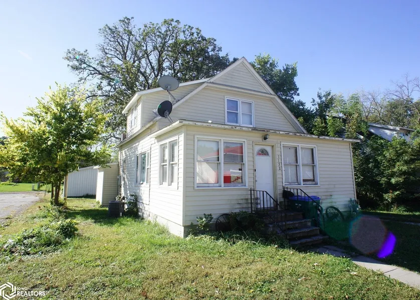 Conveniently located just west of grocery stores and downtown, this story-and-a-half home offers solid potential with several key updates already completed. Features include a spacious 3-car garage with metal siding and roof, newer furnace (within last 5 years), central air, and updated electrical with exterior meter. The exterior is finished with low-maintenance vinyl siding. Inside, the kitchen opens to a casual dining area plus a formal dining room-great for entertaining. Kitchen appliances stay, and there's main floor laundry off the kitchen. One bedroom on the main level and two upstairs provide flexible living options. A great opportunity for buyers or investors ready to add their finishing touches!