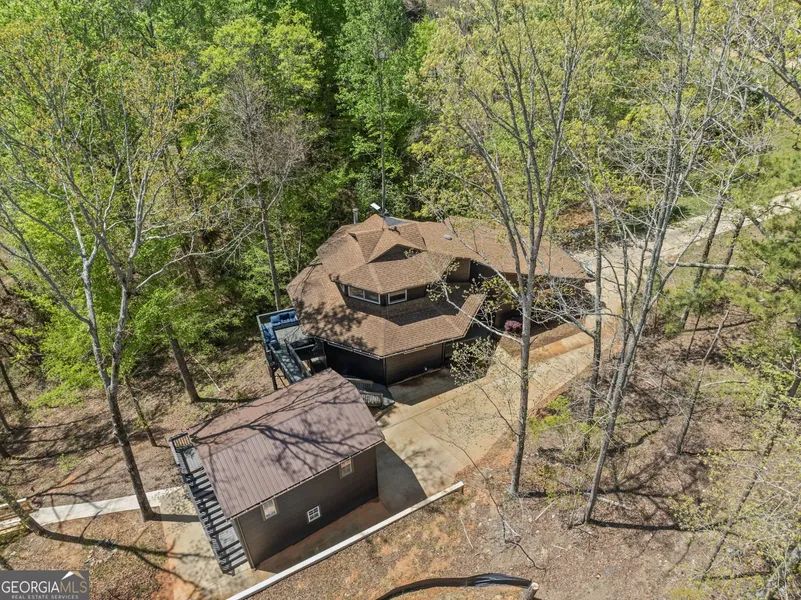 CHARMING LAKE HOUSE WITH GUEST SUITE | REMODELED IN 2023 | YEAR ROUND DEEP WATER! Welcome to your Dream Lake Retreat! This beautifully updated lake house blends fun character with modern upgrades, offering year-round enjoyment on a low - traffic, deep water cove of Big Tallapoosa River! MAIN HOUSE features include: Fully remodeled in 2023 with new flooring and fresh paint throughout. 2 Spacious bedrooms plus an oversized bunk room. 2 Full bathrooms. Updated kitchen is perfect for dinner after long lake days. Living room and upstairs primary bedroom showcase stunning lake views! Expansive mudroom / laundry room w/generous storage space. Sleeps 8-10 comfortably. Game room located in the main garage for added fun. Monitored alarm and fire systems. Starlink internet for fast, reliable connection. New water heater in 2024 and whole-home water filtration system in 2025. OUTDOOR LIVING features: Large lakeside dock perfect for relaxing, grilling and entertaining. Easy lake access via a long, charming wooded walkway. Max-size dock with new floats, a covered boat slip, newly constructed lower deck, and second level for sunbathing or lakefront entertaining. Close proximity to Swagg Boat Ramp, South Marina, and Concert Coves for added lake convenience and fun. GUEST HOUSE: Located above the detached garage. Loft style layout with a full bathroom. Ideal for guests, a private office or rental potential. Incredible elevated lake views! Whether you're seeking a full-time residence or a weekend getaway, this lake house checks all the boxes! With character, space, upgrades and a stellar location - this one is a must see!! Seller is offering $5000 toward finishing the detached garage/guest house (sheetrock needed), closing cost, or rate buy down. Seller is offering one year of paid dock service through 8/2026. (details in additional documents) Home is being sold furnished.