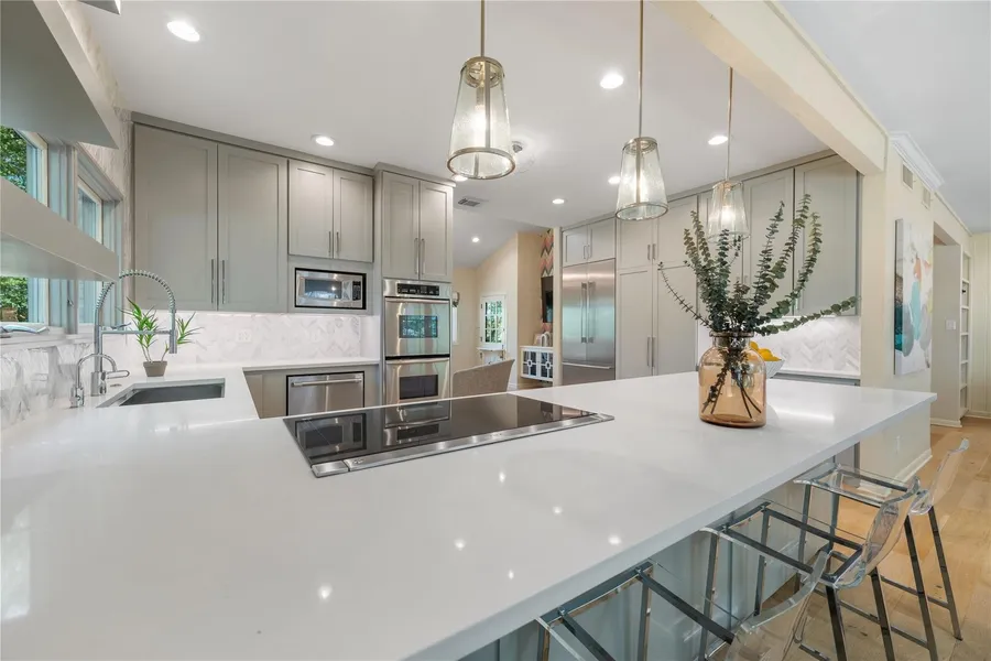 Experience extraordinary living in this beautifully upgraded 4-bedroom, 3-bath retreat in West Lake Hills, zoned to the coveted Eanes ISD. Set on over half an acre, the property feels like a private resort with a sparkling pool, covered patio, and thoughtfully designed grounds with stonework, layered plantings, and a serene sitting area. Inside, over $200K in curated enhancements elevate every space-from two spacious living areas and a dedicated dining room to the designer lighting, custom built-ins, and rich wood floors throughout. The kitchen, reimagined by Butterlutz Design, showcases custom cabinetry with quartz countertops and Thermador appliances, including a built-in French door refrigerator, induction cooktop, wine refrigerator, double oven, and walk-in pantry wrapped in designer wallpaper. The main-level primary suite offers dual vanities, a soaking tub beneath a skylight, and a...