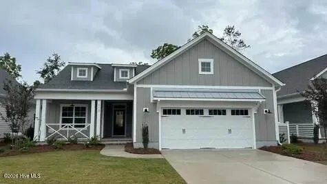 Riverside Cove is a charming community convenient to everything Wilmington. If you need a quick move in, this is the perfect place! Come see the beautiful Bedford home plan in the Farmhouse elevation. This MOVE-IN-READY plan is a generous 1921 sq. ft. with 3 bedrooms and 2 baths all on one story! Wonderful upgrades include a Prestige Kitchen Layout with gas cooktop, 42'' upper cabinets, under cabinet lighting, full depth cabinet over a refrigerator with end panel, trash can pull out, draw stack under cooktop, shiplap wainscoting on the back of the island, full overlay cabinet doors, farm sink and soft close doors and draws. Additional upgrades include the optional owners bath layout with oversized tile shower, white wood shelving in owners closet and pantry, center meet sliding 8' tall door from great room to large covered porch, painted exposed beams in the great room/dining area, tub with tile walls in guest bath, bench with hooks in mudroom, craftsman trim package throughout, shiplap wainscoting on fireplace and crown molding in main living areas.