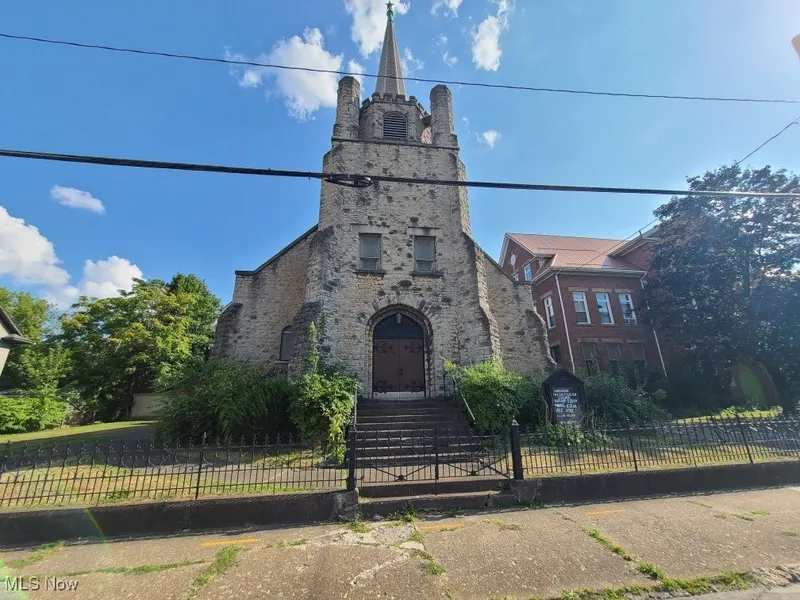 Exterior stone architecture, sanctuary features beautiful woodwork and stained glass windows. Basement features offices, fellowship hall, 2 restrooms. Ample parking.