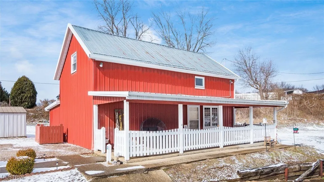 This unique property features a beautifully remodeled 1920 barn transformed into a cozy home. With 1,600 sq ft of living space, it combines rustic charm with modern updates. Inside, you'll find stunning wood beams on the ceilings, adding character and warmth. The exterior boasts a durable metal roof and siding, offering a sleek, industrial look. This home includes 1 spacious bedroom and 1 bath, perfect for those seeking a one-of-a-kind living experience. Additionally, this property presents a great investment opportunity as a rental.