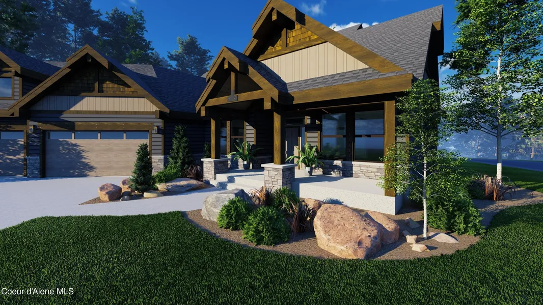 Welcome to Wild Ridge Estates a stunning rustic-modern home to be built by an award-winning builder, offering the perfect blend of rustic charm and modern elegance. This beautifully designed residence features 3 bedrooms, 2.5 bathrooms, and an office, thoughtfully crafted with high-end finishes for a seamless balance of warmth and sophistication. Step inside to a spacious great room with soaring ceilings and large windows that capture breathtaking views. The chef's kitchen is ideal for cooking and entertaining, showcasing a large island, quartz countertops, a walk-in pantry, and premium appliances. The luxurious master suite serves as a private retreat, complete with a spa-like ensuite and a generous walk-in closet. Two additional bedrooms provide comfortable accommodations, while the optional bonus room adds flexibility for a home office, media room, or gym. Designed for convenience, this home boasts a large laundry room, a three-car garage, and ample storage. Outdoor living is effortless with a covered patio and front porch, perfect for soaking in the stunning scenery. High-end finishes like quartz, tile, and luxury vinyl plank flooring enhance every space, making this home a rare findmodern yet inviting, sophisticated yet warm, all with picturesque views. Additional floor plans are available.