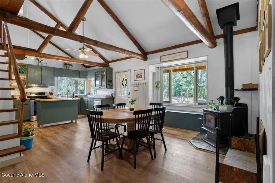 Seller is willing to pay 2% seller credit! Welcome to your serene countryside retreat-a rustic-chic haven nestled on a spacious, tree-lined property with a huge 30'X60' shop! This gorgeous home blends mountain-cabin charm with modern comforts: vaulted ceilings and warm wood-tone flooring set a welcoming tone. The open floor plan centers around a cozy wood stove and leads to a bright kitchen with beautiful cabinetry, spacious counters, stainless appliances, and a central island perfect for gathering. Luxurious primary suite offers generous closet space, plus a flexible loft area that could serve as guest quarters, office, or studio. Upstairs, sloped ceilings and sturdy beams frame a spacious bedroom offering peaceful privacy. Step outside to enjoy covered front porch seating or retreat to the backyard's firepit area-a perfect spot for twilight conversations or marshmallow-roasting evening...