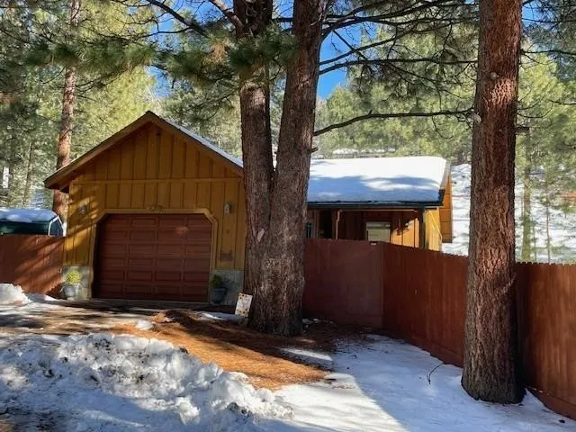 Don’t miss this charming mountain cabin tucked among the trees just off Grizzly Road. This special property offers exceptional peace and privacy, yet is conveniently located just a short drive from Lake Davis for year-round recreation and Grizzly Ranch Golf Course with its 18 holes of championship golf. Well maintained and truly move-in ready, the home features attractive redwood siding accented with flagstone trim. An RV pad with 30-amp electrical service adds flexibility, and water and sewer are provided by GLRID. Inside, the cabin offers two bedrooms and two baths, plus a dedicated laundry room with custom cabinetry and a sink. The light and bright open floor plan showcases hardwood floors throughout, vaulted pine ceilings, and an inviting mountain feel. The kitchen is thoughtfully designed with hickory cabinets, Corian countertops, stainless steel appliances, and a large center island—perfect for meal prep or entertaining. Stay cozy by the kerosene stove and step outside to enjoy the large, fully fenced yard, complete with multiple outdoor entertaining areas, a lawn, and a firepit—ideal for relaxing evenings under the stars. Ask about the option to purchase two contiguous lots, offering added privacy and potential income opportunities. This is mountain living at its best—peaceful, comfortable, and ready to enjoy.