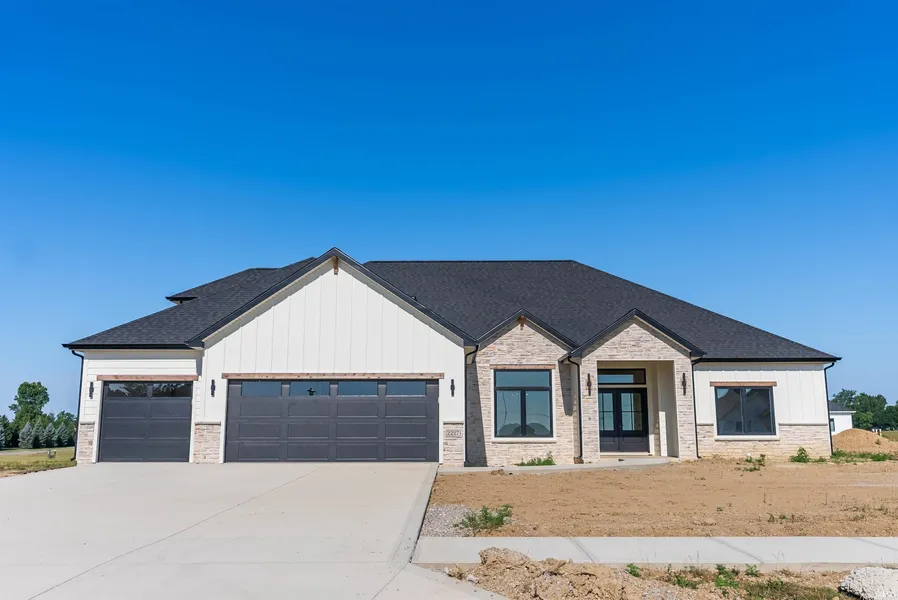 NEW custom Lofted Ranch floor plan built by Fall Creek Homes, located in the sought-after Bridgewater Reserve. This home has over 2,800 sq ft of thoughtfully designed living space & offers the perfect blend of luxury & functionality. Feat. 4 spacious beds with an optional 5th bedroom currently used as a office/den, split bedroom floor plan on the main level, & 3 full baths, this home has room for everyone. As you enter into the foyer you'll fall in love with the details. The show-stopping kitchen, complete with a gas stove, pot filler, custom cabinetry, quartz countertop and backsplash and an eye-catching ceiling detail that continues throughout the home with an open concept layout into the living room that has so much natural light from all the windows and custom quartz fireplace flanked with lighted built-ins. The primary suite is a true sanctuary, offering a large walk-in closet, a sp...